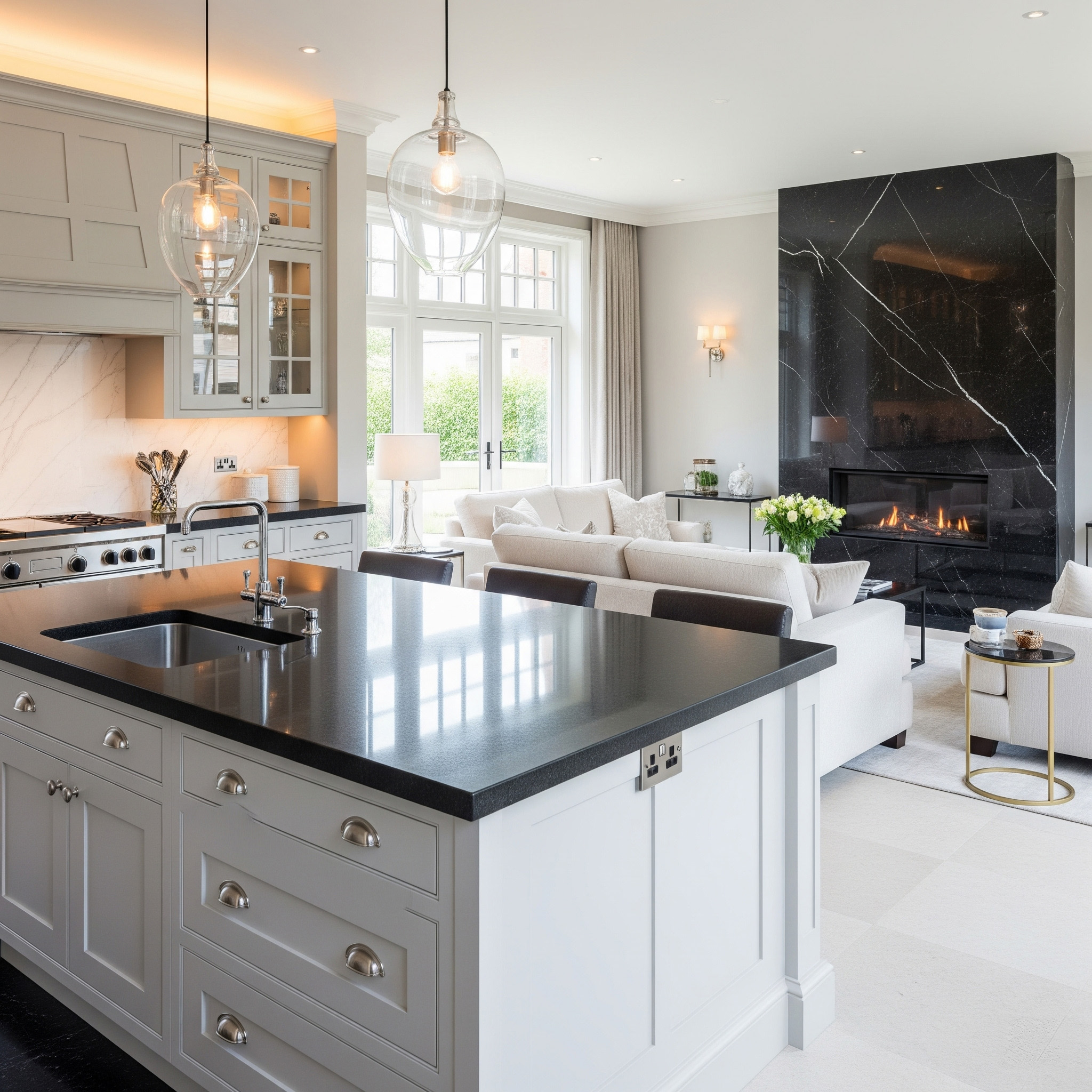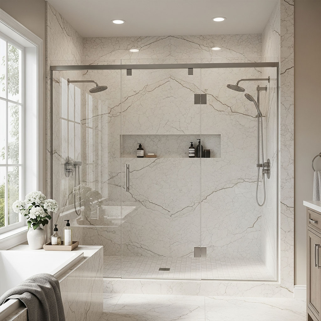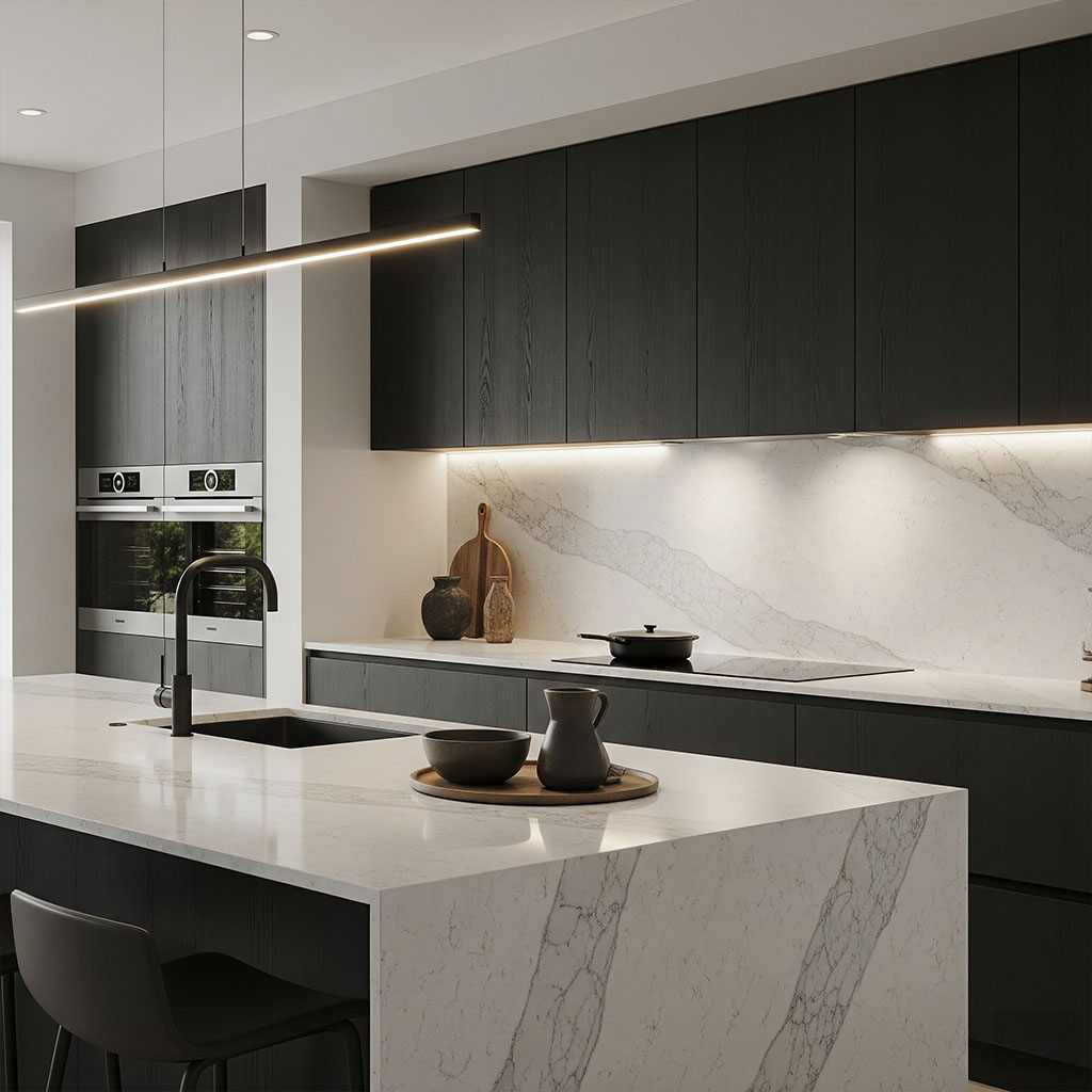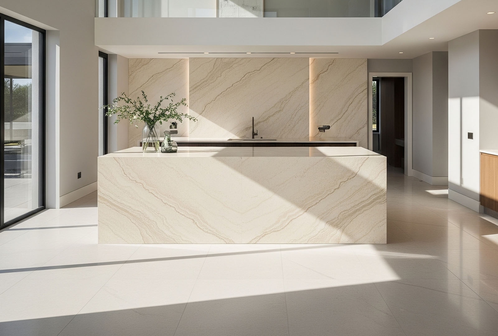 Matched slabs cut from the same quarry face for seamless visual symmetry.